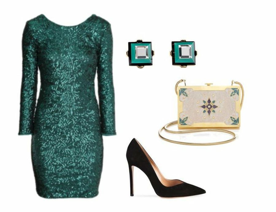 Esta temporada el verde llega pisando fuerte, sobre todo de cara a tejidos de lentejuelas o metalizados. Así, un diseño ceñido puede quedar genial con un toque disco basado en stilettos negros, un clutch con formas geométricas que incluyan el tono del vestido y unos pendientes retro-futuristas, discretos y originales a la par.
