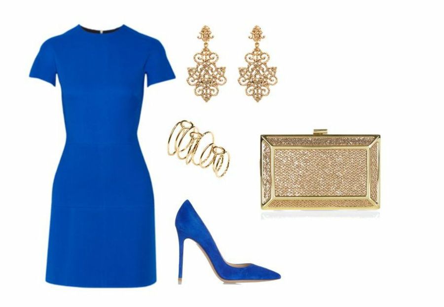El azul klein destaca en los looks más festivos por su alegre tono. Si quieres lograr un resultado moderno y acertado, nada mejor que buscar unos zapatos del mismo tono, pendientes maxi, anillos para diferentes falanges y un bolso de mano que incluya destellos dorados. ¡Perfecta!Agradecimientos: Polyvore