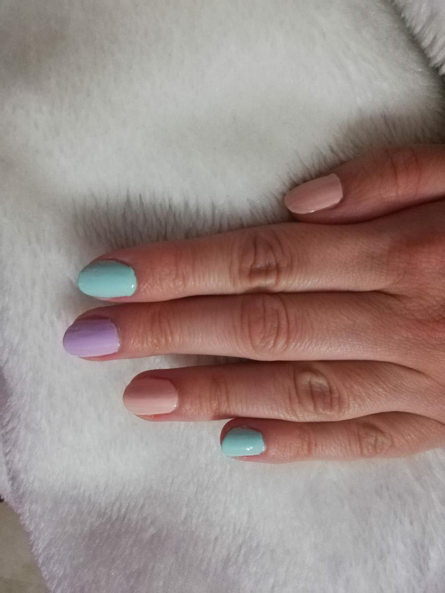 Hemos utilizado los esmaltes de Avon BB Nail Colour unos esmaltes que lo tienen todo en uno, actúan como prebase, cubre bien la uña y rellena las grietas haciendo que quede más lisa y el resultado sea más duradero. Éstos esmaltes son todos en colores pastel, a día de hoy con 6 tonos diferentes, con los que perfectamente podemos cubrir una uña de cada color, pero nosotras sólo tenemos 3, así que hemos ido combinando pintando la central de tono lila, 2 de tono rosa y 2 de tono azul.