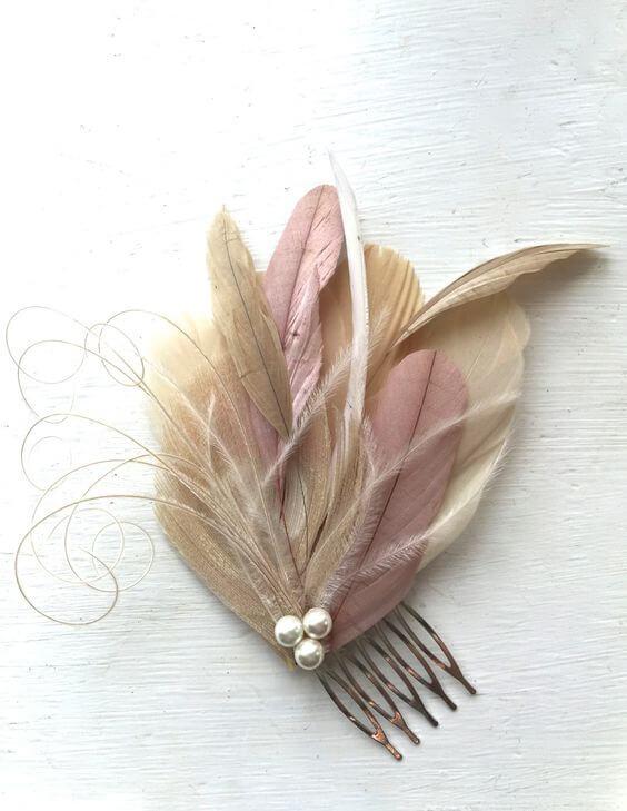Las peinetas de metal o acrílicas que con cristales, flores de tela o plumas, son detalles a tener en cuenta. Otra sugerencia son las bonitas diademas tanto de metal como forradas con un precioso tocado de plumas naturales que o bien lo montamos sencillo y listo; o bien pegamos un cabuchón de cristal, de resina, unas flores de tela o filigrana de metal en los extremos. Estos accesorios tienen la complejidad que quieras darle, pero os recordamos que con solamente pegar o coser está listo, así de fácil.