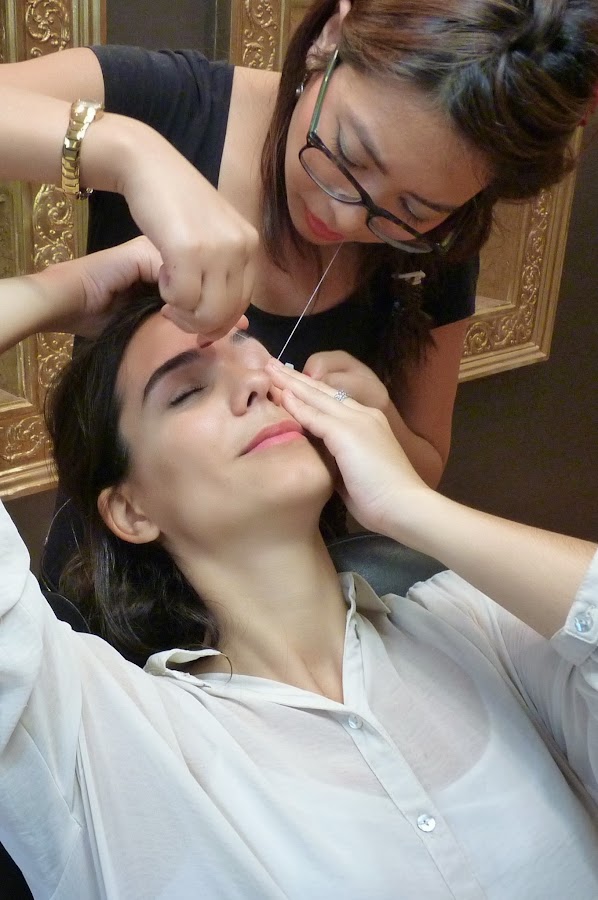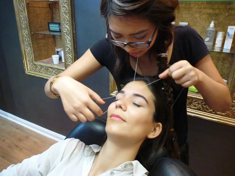 Si no conocéis la técnica de la depilación con hilo os recomiendo que la probéis. Es efectiva y es impresionante ver cómo lo hacen, ya que arrancan el pelo de raíz con hilo que controlan con la boca.