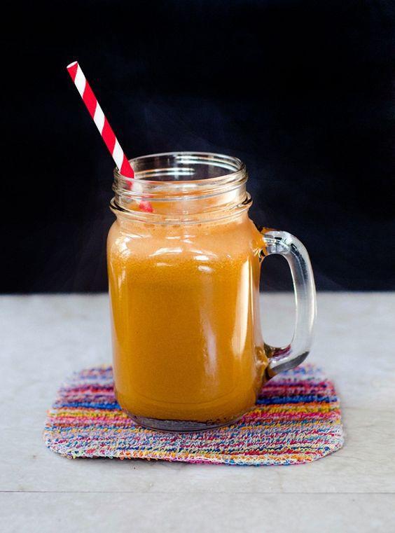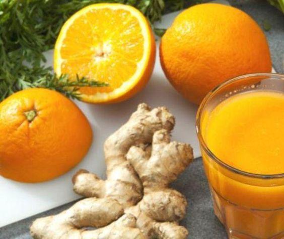 Esta combinación de ingredientes le aporta al organismo vitaminas, minerales y fibras necesarias para tener una salud integral. Además, la buena noticia es que es ideal para bajar de peso y reducir medidas, gracias a que ayuda a acelerar el metabolismo y a quemar grasas localizadas de forma natural. Lo único que necesitas es el zumo de 3 naranjas, 1/2 vaso de agua y 1 cucharadita de jengibre rallado. Lleva todos los ingredientes a la licuadora ¡Y listo! Este batido es recomendable para consumir en las mañanas debido a que es el momento en que tu cuerpo asimila mejor los cítricos.