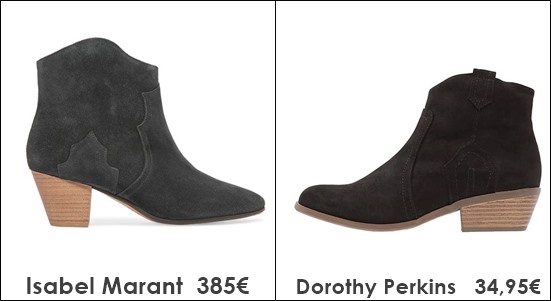 Nuestros favoritos, los "Dickers" de Isabel Marant a 385, y por supuesto este clon tan conseguido de Dorothy Perkins a un precio bastante inferior.