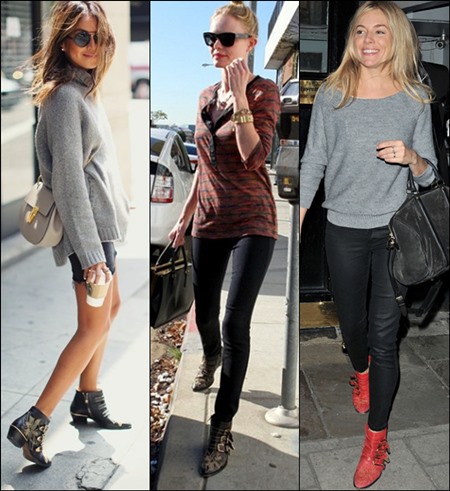 Los botines con tachuelas. Se pusieron de moda en otoño de 2008, los sacó la firma Chloé y muchas celebs los llevaban (y los llevan), creando unos looks originales y cómodos. Si no te hiciste con ellos en su momento, puedes hacerlo ahora!! Vuelven con mucha fuerza.