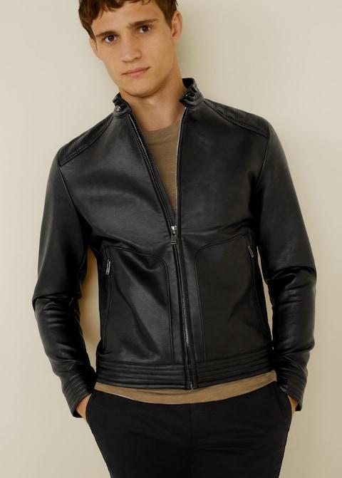 4. Efecto de piel en negro o azul marino. Esta chamarra es perfecta para un día que quieras verte formal pero no muy elegante. Este corte aporta cierta amplitud en hombros y estiliza tu cintura gracias a que los bolsillos situados en el abdomen (casi inapreciables) dibujan dos líneas verticales.