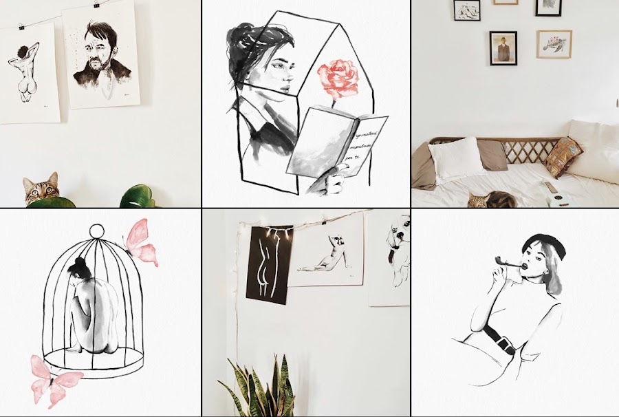 Puedo decir que ella es mi amiga, y que es una artista. Esta es su cuenta secundaria donde sube sus ilustraciones con acuarela (a mi gato le hizo un retrato la mar de bonito) y que a mí me encantan. por su estética minimalista en blanco y negro y con algún toque de color, por los detalles que hay que parecen al azar pero esta todo calculado. Sin duda, muy orgullosa de decir que es mi amiga. ¡Disfrutad de su arte!