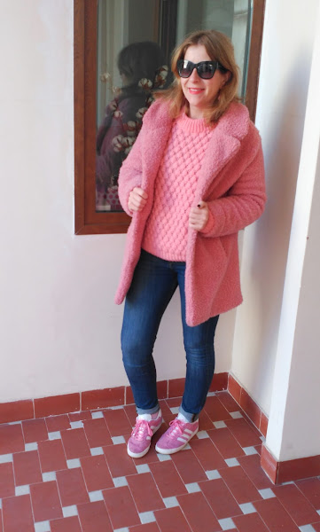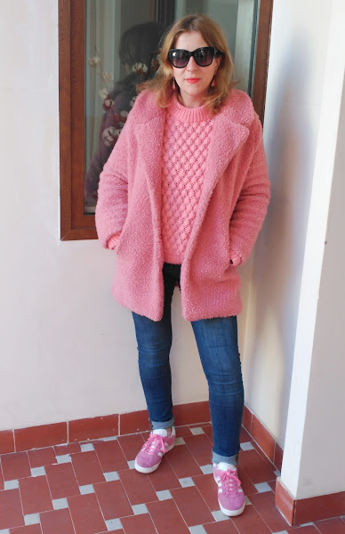 En este look predomina el rosa en su variedad más dulce. Y no me cansa...
