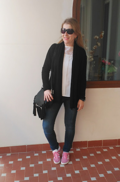 De nuevo combino las zapatillas rosas con un look que las hace destacar.