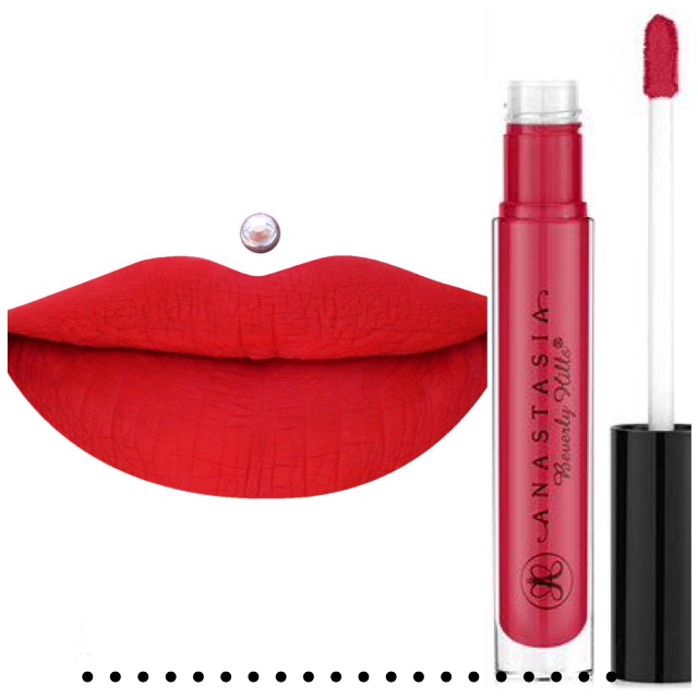 Anastatia Beverly Hills. American Doll. Es un medio/oscuro azul con base roja ultra mate. Su pigmento mate intenso hace que sea uno de mis favoritos. Nada pegajoso, dura incluso después de beber y comer medianamente bien unas 5 horas.