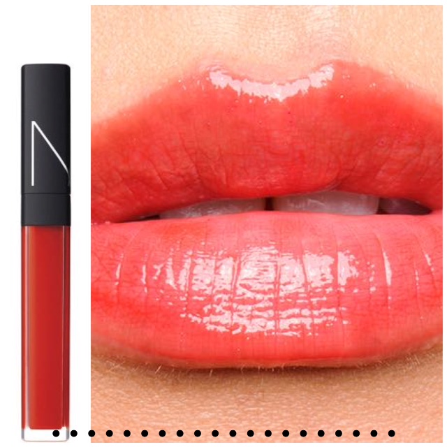 Nars Eternal Red Lip Gloss. Es un color brillante rojo/anaranjado con tonos cálidos, cremosos y acabado brillante.