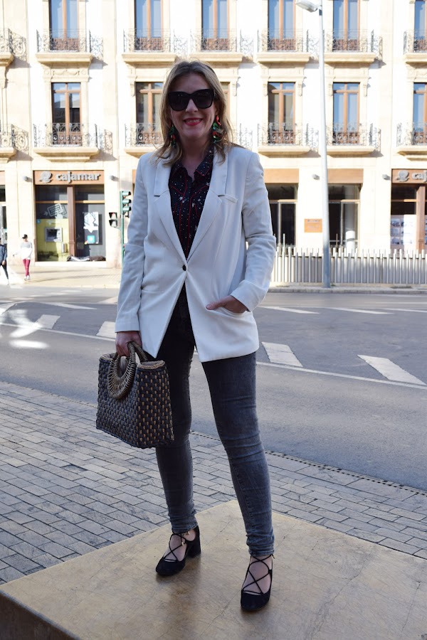 Para que el look no se vea apagado, nada mejor que una blazer blanca, aviso, no apta para meriendas con niños y chocolate...