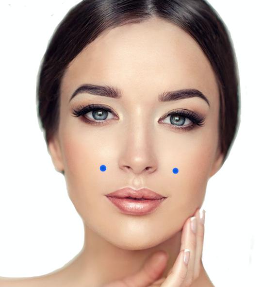 Estos puntos se pueden estimular al mismo tiempo y estimulan la circulación sanguinea y ayudan a orevenir arrugas en la piel y aumentan la tonicidad de la piel del área de las mejillas.