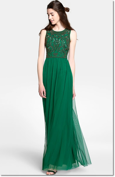 Vestido largo con cuerpo bordado de strass. Un vestido que luce por sí solo, diferente y llamativo. De Tintoretto, de venta en El Corte Inglés (150).