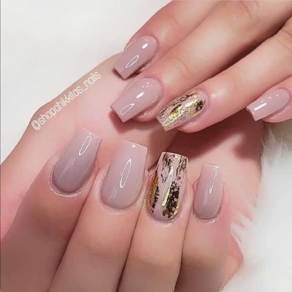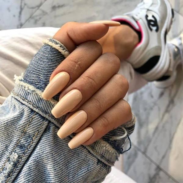 A veces, el mejor tipo de diseño de uñas que se puede elegir es uno simple que no tiene mucho estilo. Esta está pintada con un color bronceado neutro que va con cualquier ropa, así que si vas al centro comercial o a un baile, tienes un aspecto elegante que encaja en el proyecto.