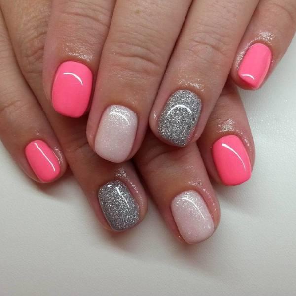 21. Rosa brillante con brillo gris, uñas muy glamorosas y muy fáciles.