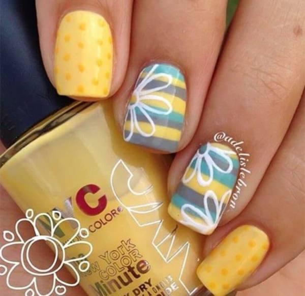 23. Amarillo brillante con algunas rayas y una calcomanía con una flor hermosa idea de la primavera