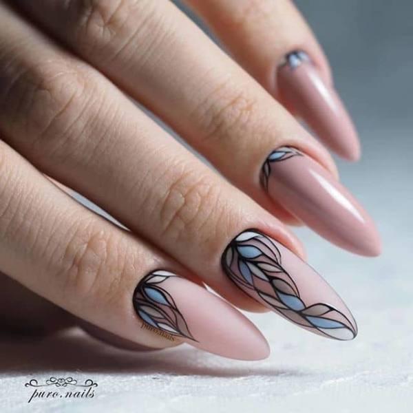 Algunos diseños modernos de uñas enfatizan las líneas precisas y resbaladizas que parecen haber sido impresas con láser. Esta toma más simple de la uña moderna vuelve a una estética más simple, enfatizando la calidad de la pintura a mano que se encontraría en una obra de arte. A su humilde aspecto se añade el hecho de que es un corte de almendra relativamente corto, bonito, no llamativo.