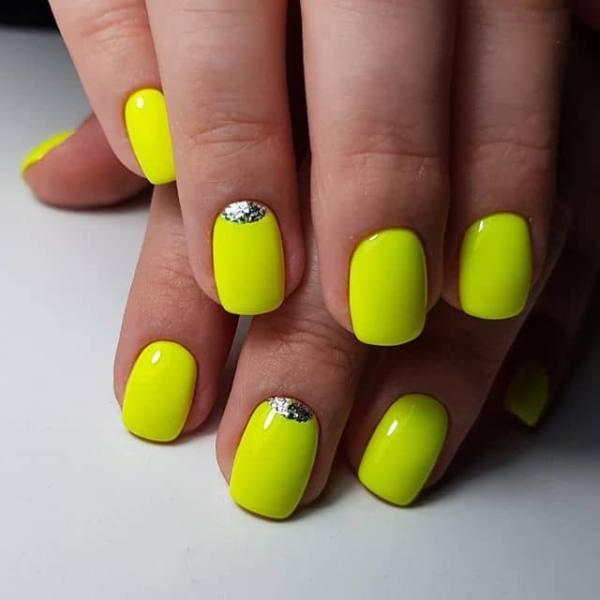 Brillantes y soleadas, estas uñas harán sonreír a todos. Son la forma correcta de dar una cálida bienvenida a la primavera y dar al portador un amistoso apretón de manos extra. Si quieres pasar de las simples uñas pintadas, intenta añadir un toque de lámina dorada en una cutícula para conseguir un lindo pop metálico.