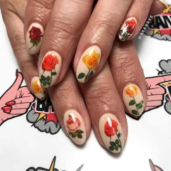 Remitiéndose a los diseños clásicos de la época, estas uñas utilizan un hermoso arte de rosas para crear un magnífico y romántico look primaveral. Con cada dedo con una flor diferente, seguro que tienes amigas que se miran las uñas con los ojos y envidian tu aspecto fresco. Estas uñas llamativas combinan muy bien con los colores sólidos.
