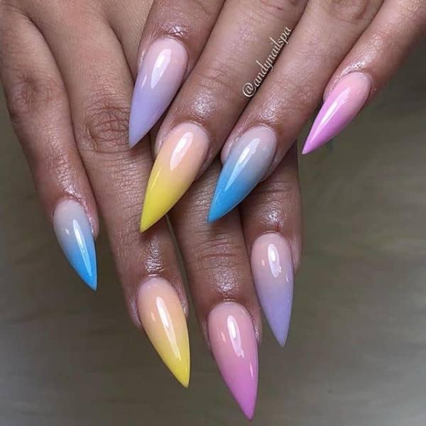 Los días frescos y los hermosos colores de la primavera se sienten casi como un suspiro de alivio después de un largo y frío invierno. Estas uñas suspiran también descolorándose de colores casi translúcidos a colores brillantes y juguetones. Con cada punta puntiaguda que trae otro favorito de la primavera, todas las manos se ven mágicas y listas para algunos días más cálidos y soleados.