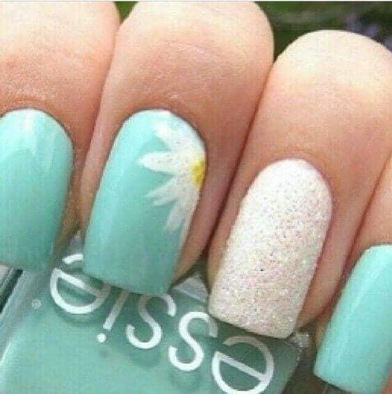 ¿Qué asociación más fuerte a la primavera hay que las flores frescas? Aunque no puedes llevarte literalmente las flores en las uñas, puedes presumir de un hermoso aspecto floral con esta colección de adorables margaritas blancas. Su superposición en el ombre verde-azul da un aspecto fresco y elástico que tendrá toda la frescura de una margarita.