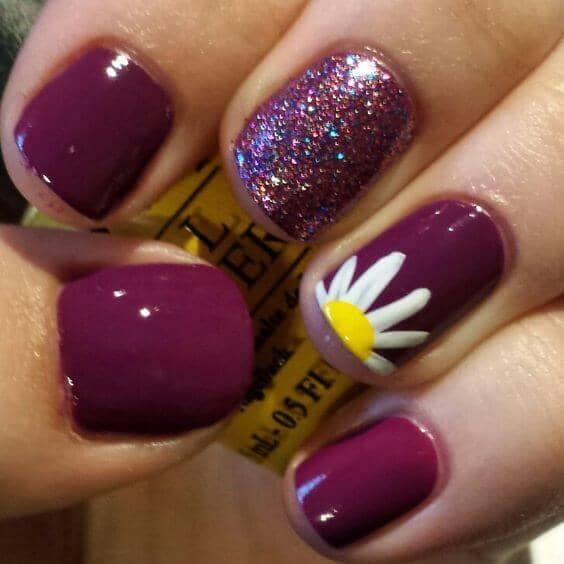 10. Púrpura oscuro con una linda flor y un poco de brillo tan bonito.