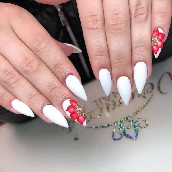 Este diseño es el epítome de un look navideño, mostrando un lindo y delicado copo de nieve en cada una de las uñas. Invertir el fondo marino y el copo de nieve blanco en la uña de acento es tan inteligente como el papel de envolver reversible. Además, si personalizas la ilustración de la capa superior, tus uñas serán realmente tan únicas como los copos de nieve que caen a tu alrededor.