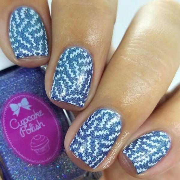 Reminiscencia de la escena de apertura de Salvados por la Campana, estas uñas festivas y ligeramente funky son pura alegría. Los sólidos zig-zags blancos rompen el brillo azul para no abrumar, en lugar de crear un fondo perfecto. Úsalas para tu próximo cumpleaños o para una noche de diversión con tus amigos.