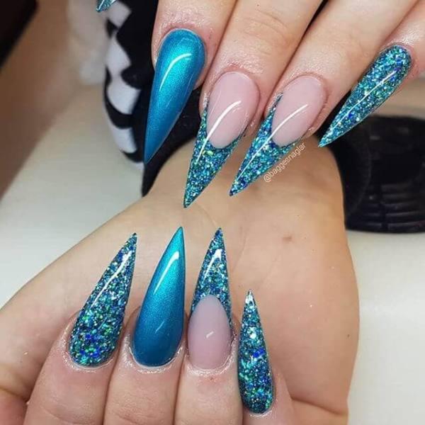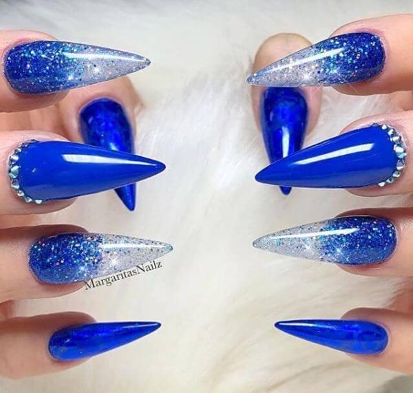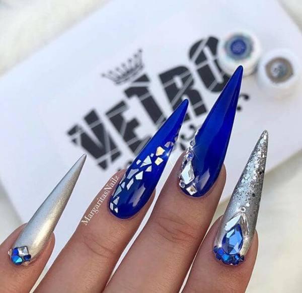 36) Mezclar y emparejar Zafiro aturdidor Stiletto Nail Art