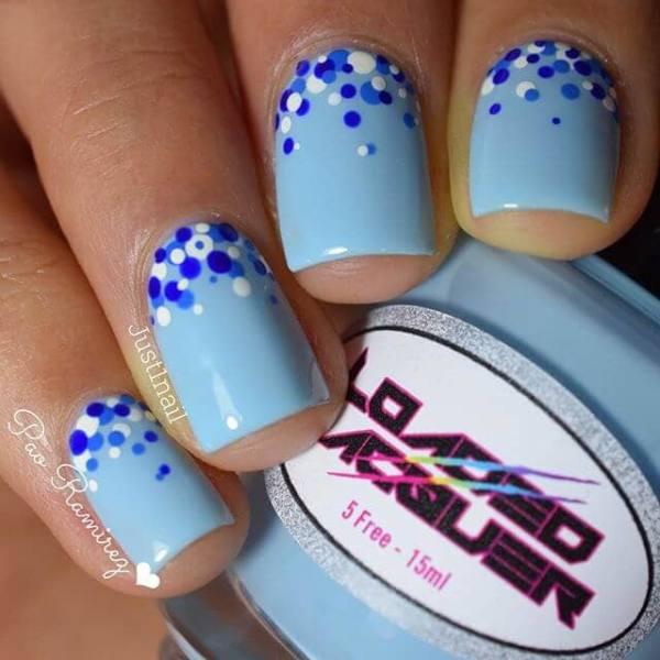 Limpio y pulido, este aspecto es el equilibrio perfecto entre femenino y sofisticado. Con pequeños puntos que parecen burbujas espumosas, hay una elegante simplicidad aquí que se ve realzada por la impecable ejecución. La creación de capas de pintura puede ser difícil, así que asegúrate de estar preparado con las herramientas adecuadas, y ten paciencia mientras cada capa se seca.