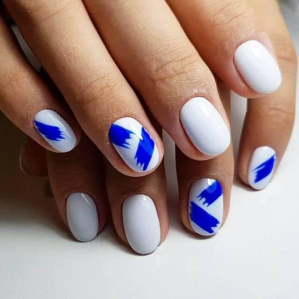 Aunque es genial como color general, a veces es divertido jugar con el azul como acento destacado. Estas uñas estilo pincel barre juguetonamente tu azul favorito sobre un lienzo blanco brillante elegante y simple para un look que es fresco y moderno. Ten en cuenta estas uñas cuando te sientas caprichoso y busques pasar un buen rato.