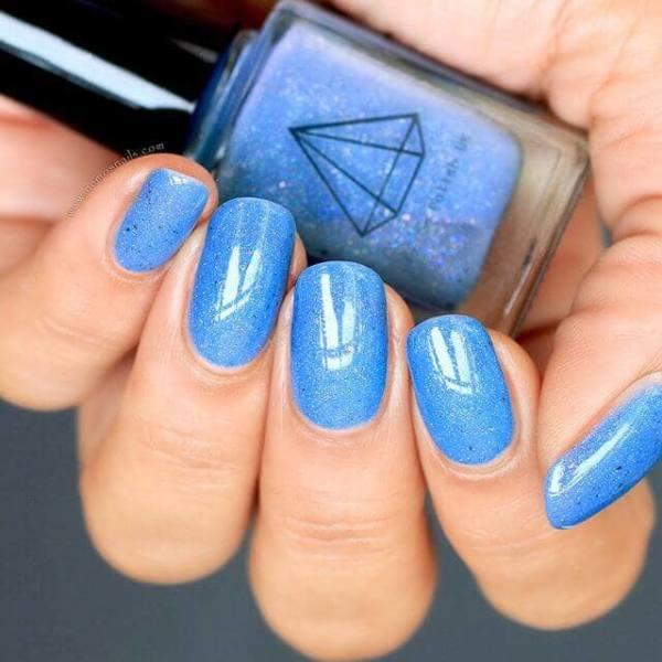 La luz juega con estas uñas de tal manera que casi crea estrellas y lunas en las curvas naturales de la uña. La mezcla de tonos azules recuerda a un cielo nocturno sobre el océano, y el ligero brillo parece como si las estrellas empezaran a asomarse en el crepúsculo.