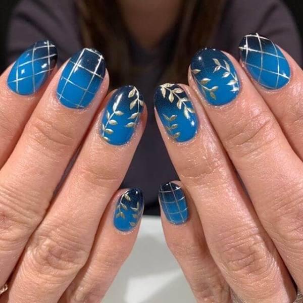 48) Encantadores adornos de oro en Lovely Blue Nails