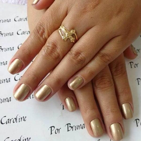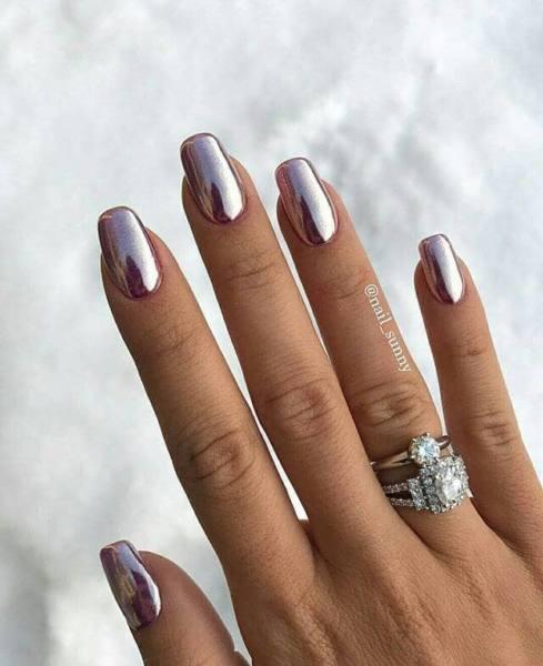 Este perfecto acabado cromado es difícil de conseguir, pero se puede lograr con la práctica. Las uñas están pintadas en un color uniforme de oro rosa. Son geniales para la playa o para cualquier lugar donde quieras ser la estrella. Sin embargo, no son muy exigentes y no te impedirán participar en cualquier actividad divertida que quieras hacer.