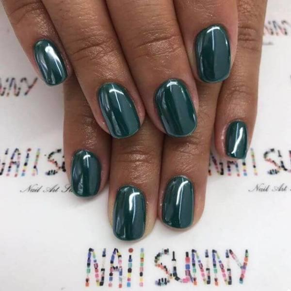 Este diseño tiene el pulido de cerceta que se aplica tan hábilmente, que parece que está brillando. Este es un gran diseño para las personas con uñas naturales. El color está de moda y va con casi todo. El bonito color de las uñas le da a cualquier conjunto un empuje. Pruebe estas uñas para trabajar.
