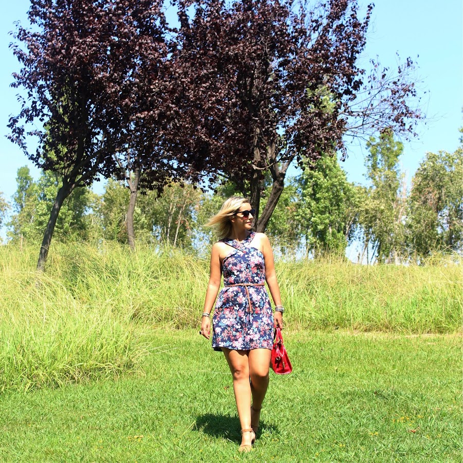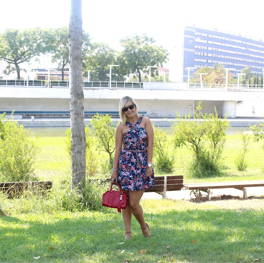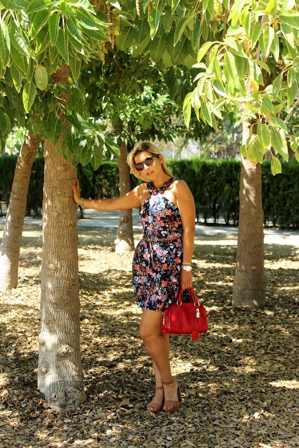 Last 3rd of September we celebrated the 50 years of the marriage of my parents. Because an important date has to celebrate it. The outfit that I chose for this day was a dress with flowers and princess cut that I mixed it with a red bag similar to Loewe and my camel sandals that I have shown in the blog a lot of times.