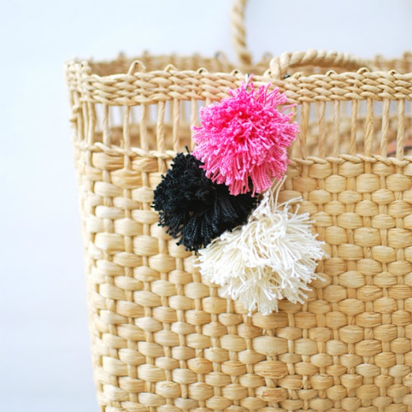 Seguimos decorando capazos, en esta cuarta idea vamos a crear tiras de pompones y borlas de lana anudadas a las asas del capazo. ¿ No me digáis que no es bonita este diy del blog Style Caster?