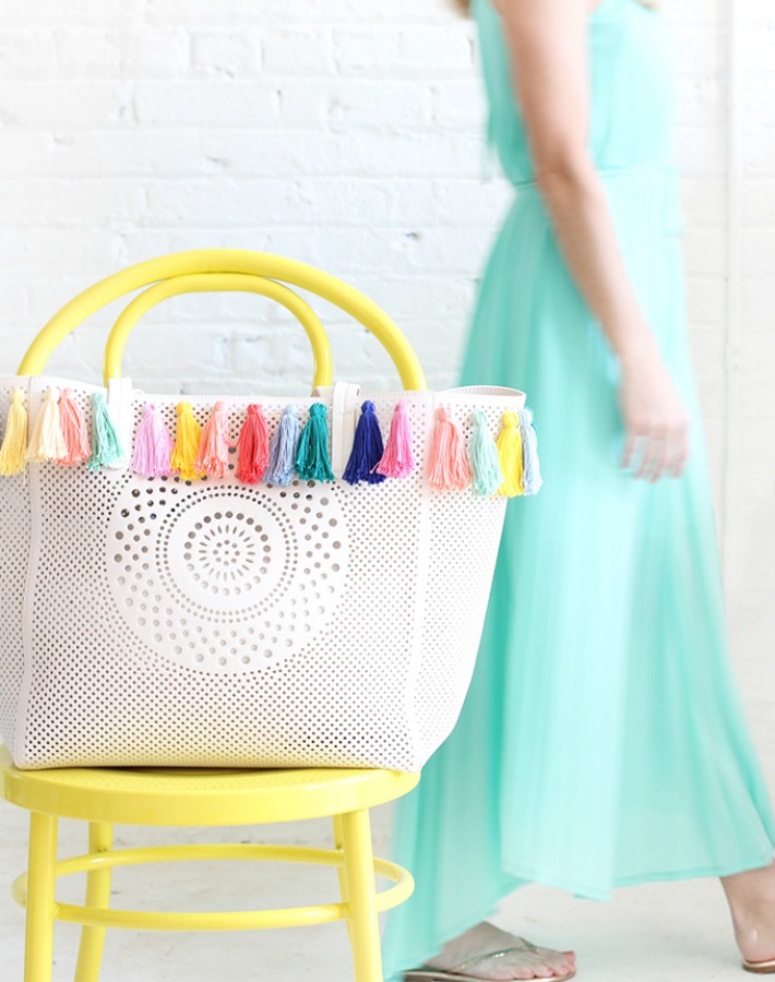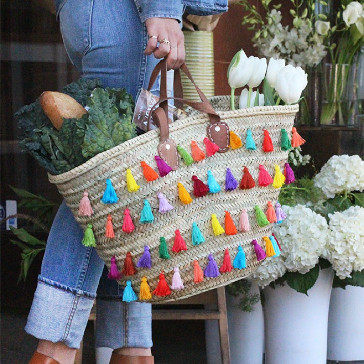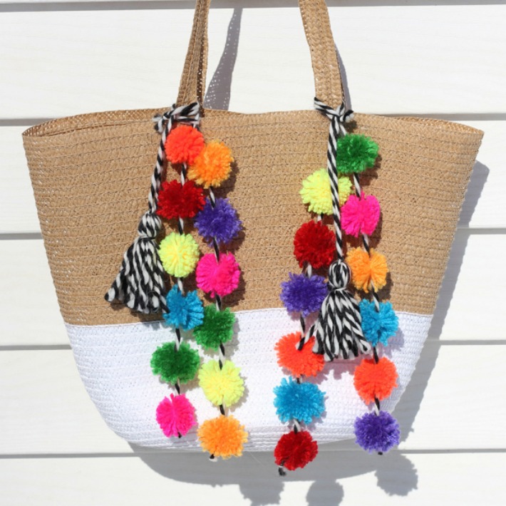 Honestly Wtf nos ofrece una variante del primer capazo que hemos compartido, pero con borlas en colores más alegres y en mayor cantidad repartidos por toda la superficie en 4 filas. Desde luego ideal para un verano divertido repleto de color.