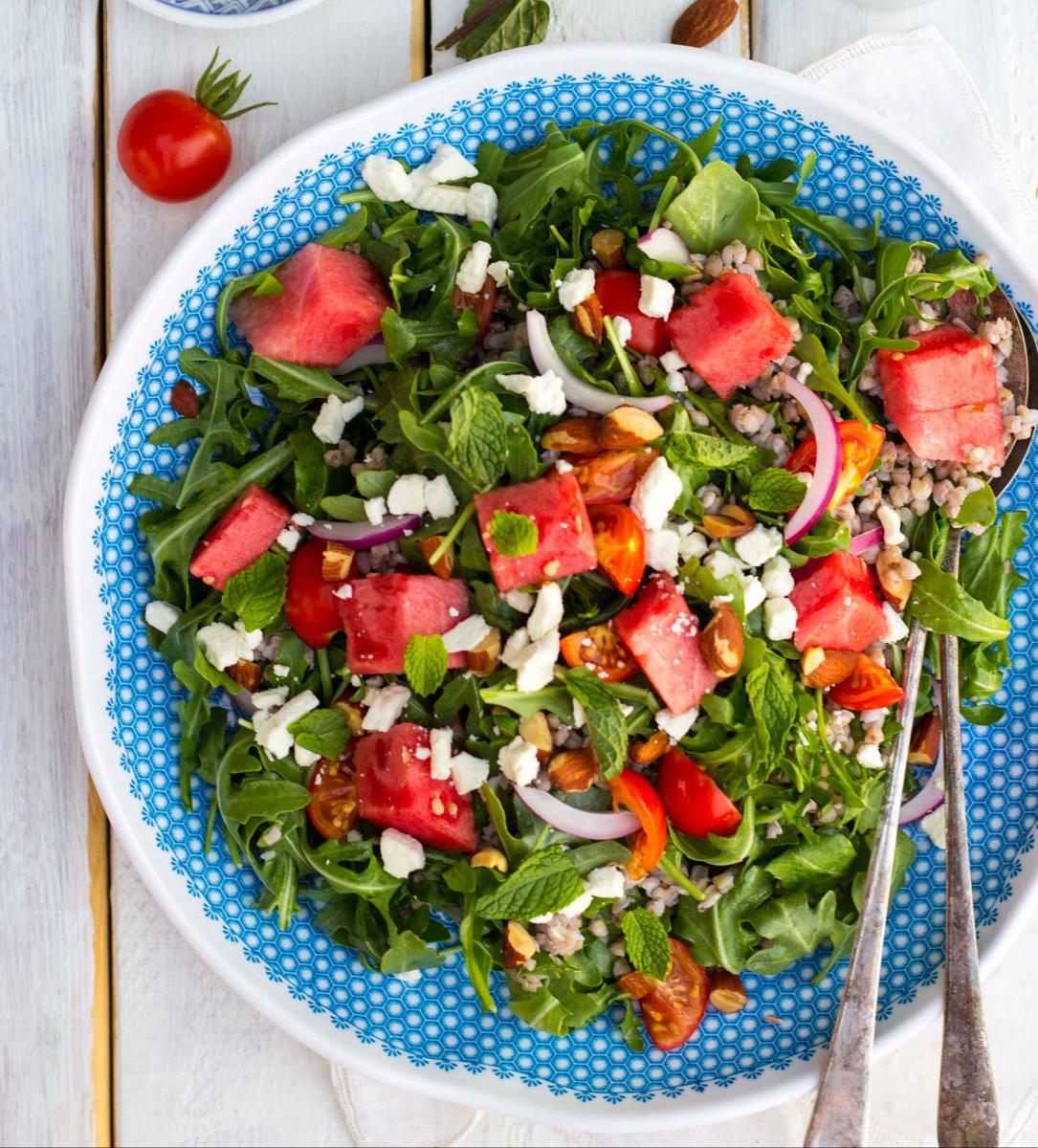 6- Ensalada de verano con sandía, rúcula y queso feta.