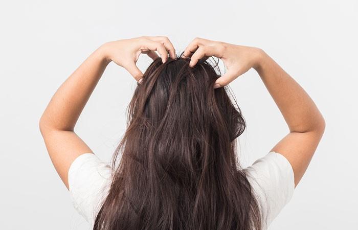 Si no lo haces, el champú seco simplemente se coloca sobre tu cabello y no puede hacer su trabajo. Así que usa las yemas de tus dedos para masajearlas en tus raíces y cuero cabelludo.