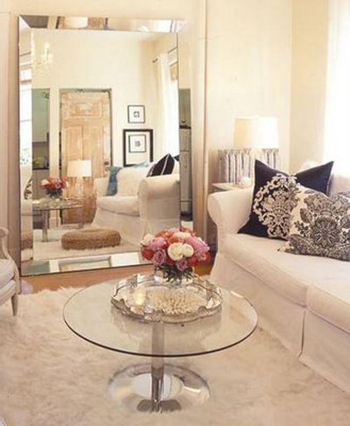 Uno de los tips más utilizados para agrandar espacios es el uso de espejos para dar profundidad al espacio, este espejo debe ser el accesorio PRINCIPAL del área, es decir, si usamos un espejo grande no debe competir con otros accesorios muy grandes dentro de la misma área ya que esta se vería sobrecargada.