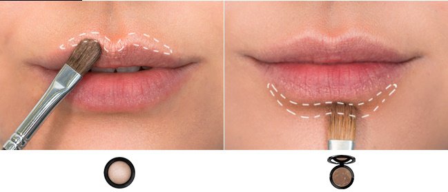 Aplica sombra oscura debajo de los labios y sombra mas clara encima