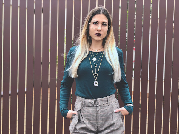 Lo he combinado con unos pantalones tailloring anchos y estampado de cuadros y unos zapatos de cordones.