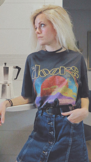 Cuando quiero dar el toque clave, recurro a mi camiseta oversize del grupo The Doors...