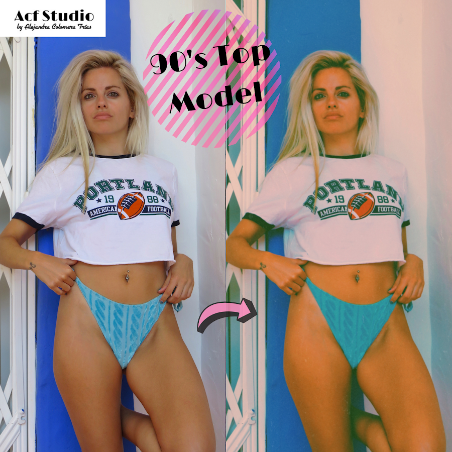 Hoy quiero compartir contigo unas fotos al estilo Top Model de los años 90. Además, te dejo, de manera resumida en un collage, cómo he editado las fotos para que se asemejen a las auténticas de la época.