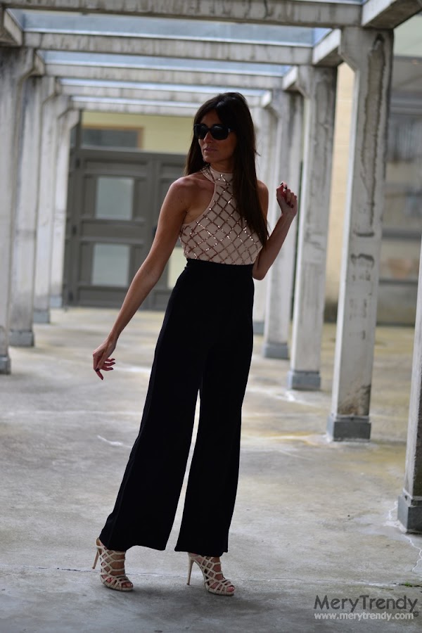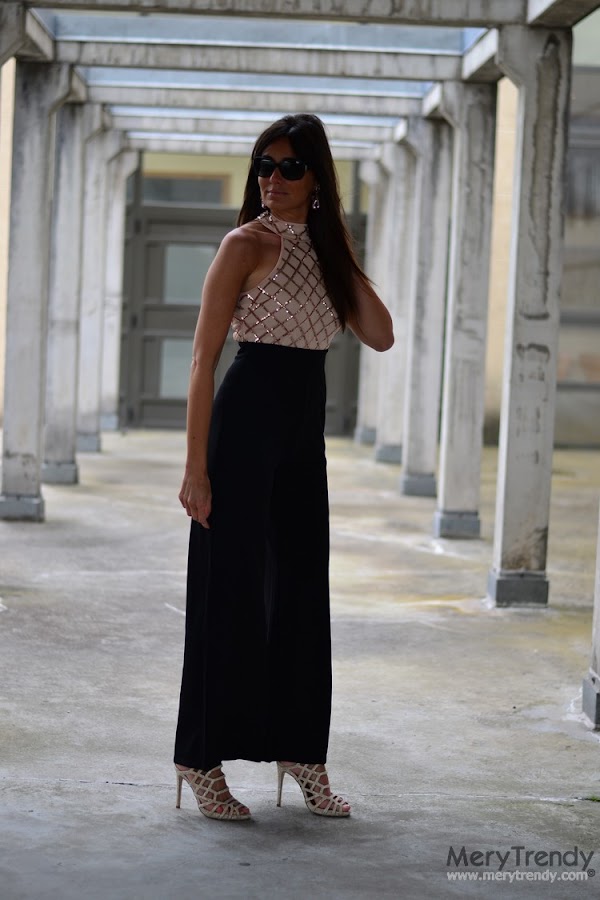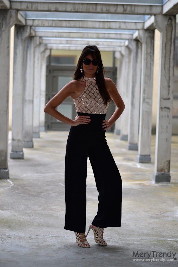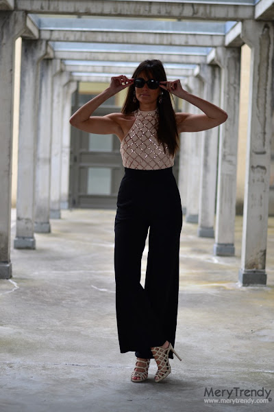 La semana pasada os comentaba aquí que de un tiempo a esta parte los jumpsuits se han convertido en mi debilidad. Pues bien, hoy me he atrevido con este modelo negro de pernera ancha y parte superior de paillettes a contraste en oro rosado, de SheIn.