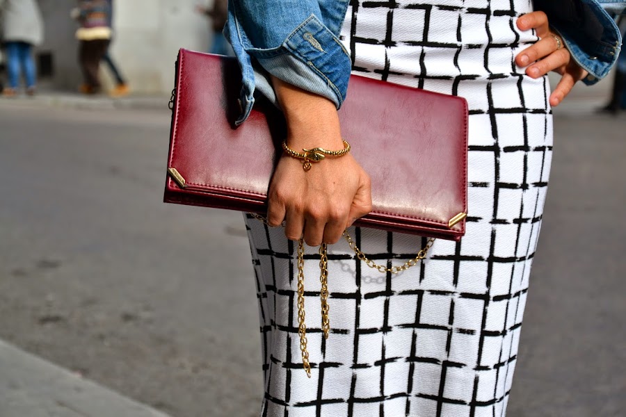 Para poner un toque de color elegí este clutch granate de Parfois y mi pulsera de la temporada: esta serpiente de Viceroy de Joyería Loan, que no me quito porque me combina con todo.