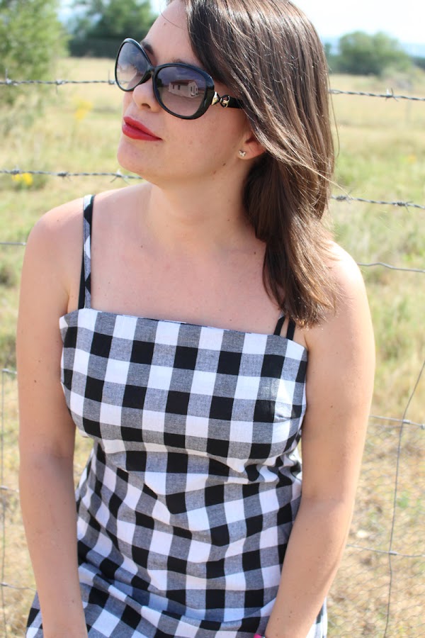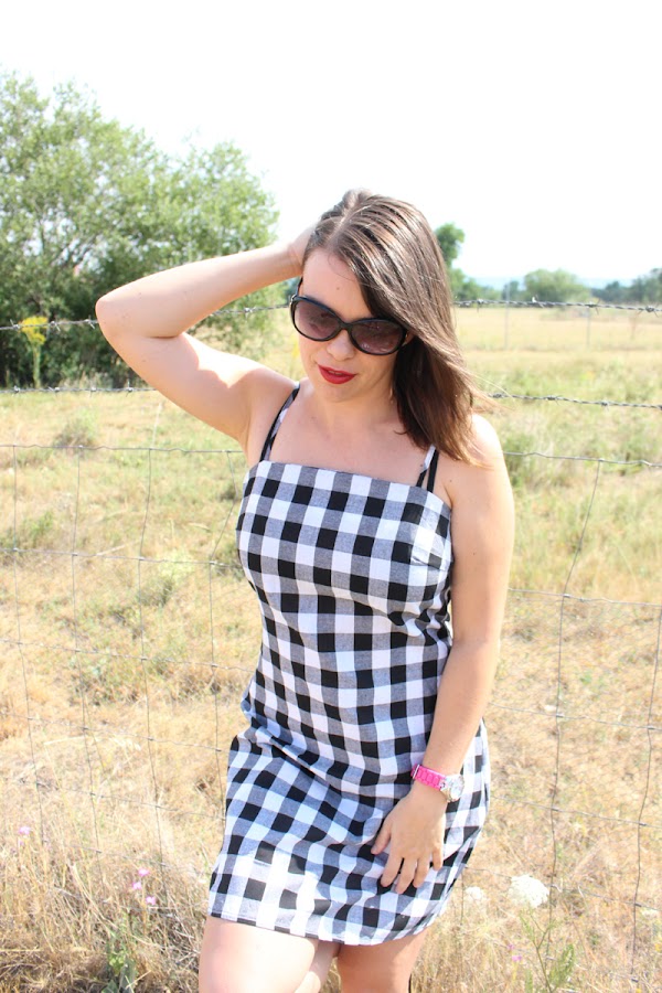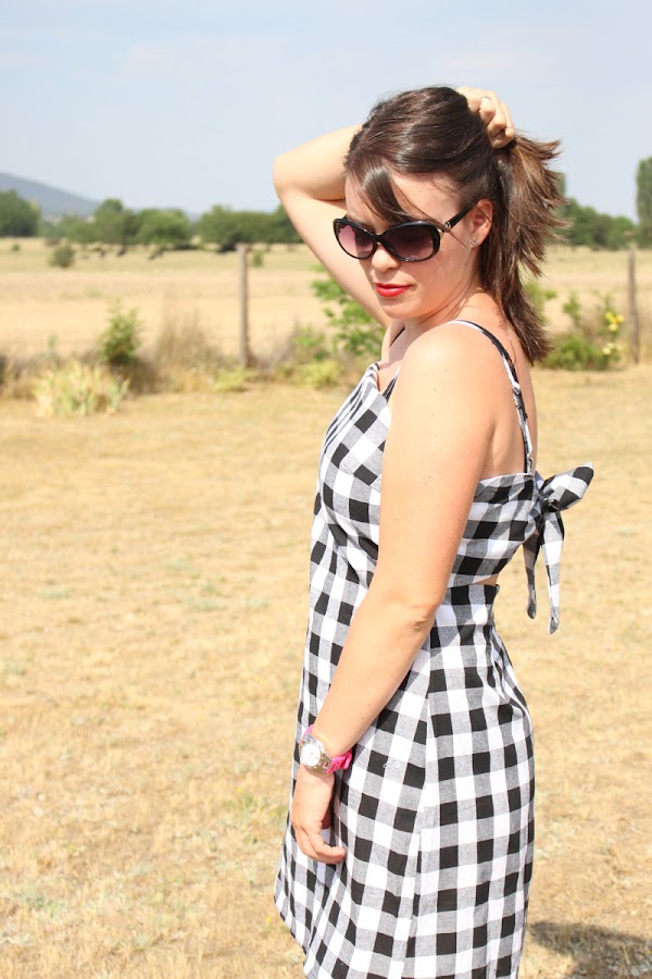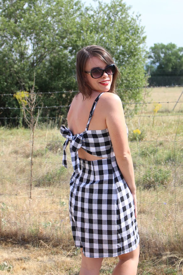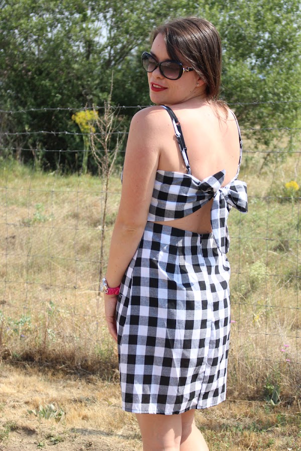 En este caso he arriesgado un poco con este vestido de cuadros en blanco, negro y gris, tipo cuadros escoceses y con escote en la parte de la espalda con lazo. La verdad es que no es muy de mi estilo pero me estoy cogiendo cosas diferentes en Zaful para ir probando, que nunca se sabe y estoy encontrando cosas que me encantan y que nunca pensaría que me gustarían tanto.