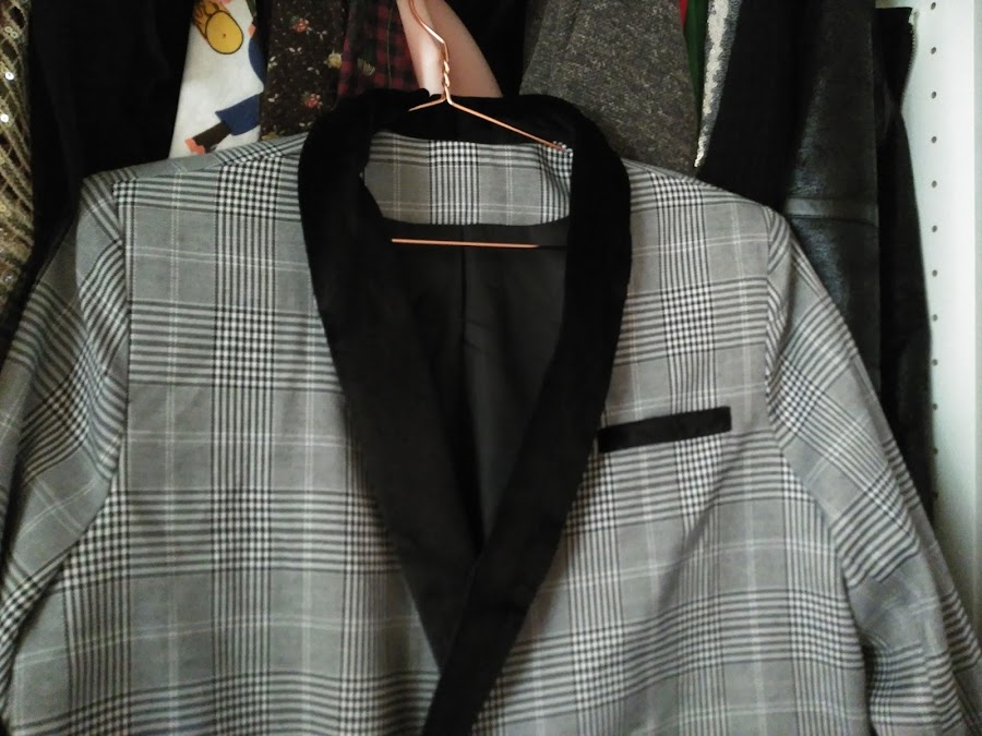 Su peculiaridad, es que mezcla la combinación del tejido de terciopelo en las solapas, con la de cuadros. Si os gusta la podéis encontrar AQUÍ a un precio estupendo, ya que está a la mitad de su precio original.