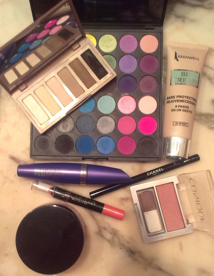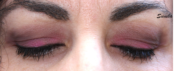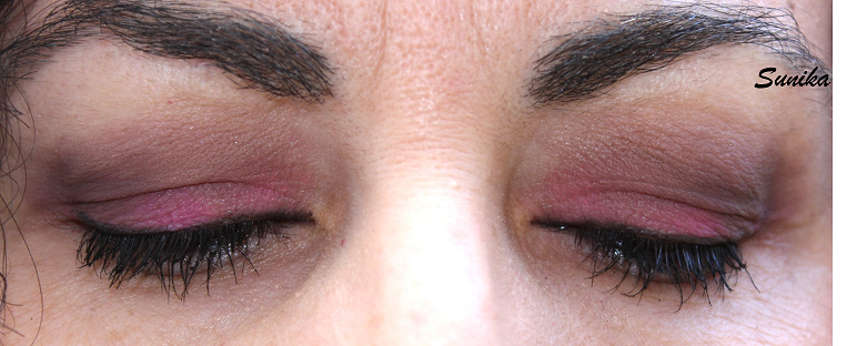 Para los ojos usé para fijar las sombras la prebase de NARS. En todo el parpado movil apliqué una sombra rojiza de la paleta de sombras de Coastal Scents y sobre ella aplique gradualmente distintos tonos tierra de la paleta NAKED Basic.